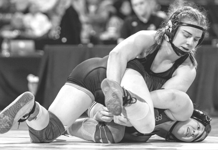 North Central’s Bella Mir won at 145 pounds, beating No. 1 seed and former teammate Reese Larramendy of Iowa in the first round to avenge her only regular-season loss. The second-seeded Mir — an Iowa transfer and the daughter of former UFC heavyweight champion Frank Mir — reversed a takedown attempt, immediately rolled and pinned Larramendy with 34 seconds left.
