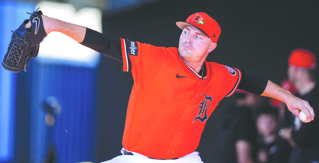 Detroit Tigers pitcher Tarik Skubal throws during workouts at spring training on Feb. 20 in Lakeland, Fla. (AP file photo)