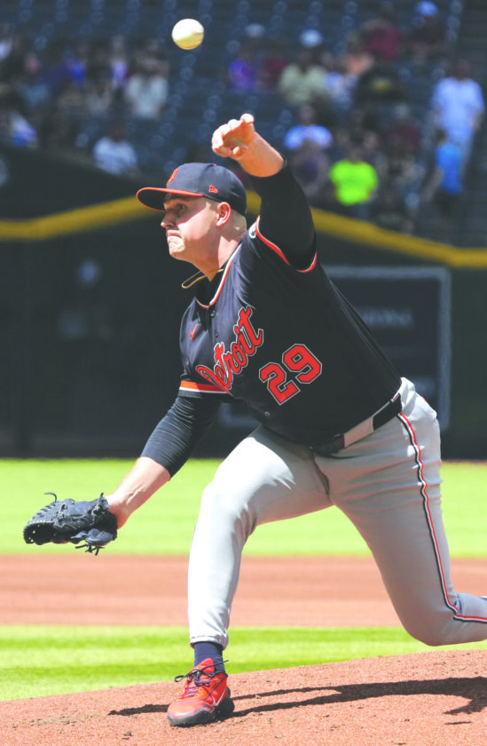 Detroit Tigers startier Tarik Skubal pitches before a game against the Arizona Diamondbacks on Wednesday in Phoenix. (AP photo)