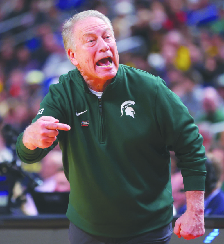 Michigan State head coach Tom Izzo reacts during a game against Louisville in the second round of the NCAA tournament on March 21 in Buffalo, N.Y. (AP photo)