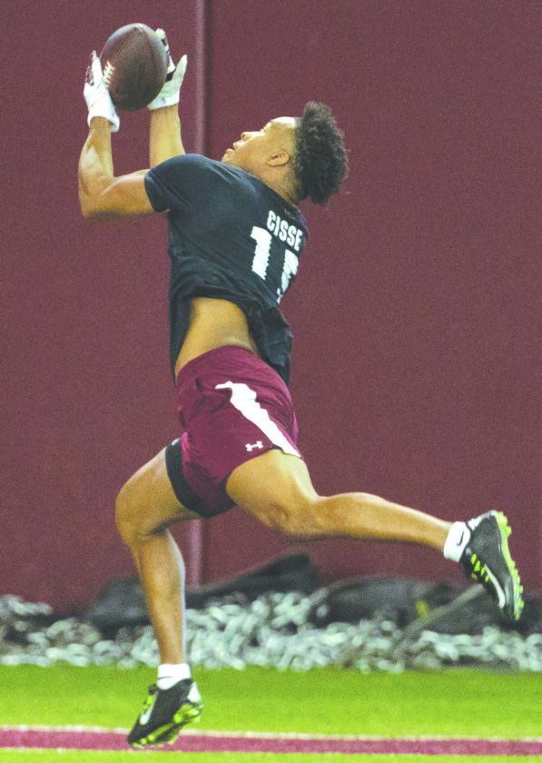 South Carolina cornerback Brandon Cisse runs drills during the school’s Pro Day on March 17 in Columbia, S.C. (AP photo)