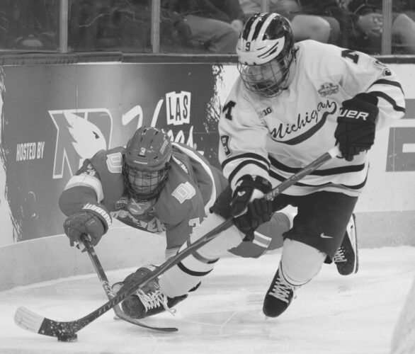 The Wolverines were on the verge of advancing to the final when Perron scored from the right point with 8:58 left in regulation. That goal came on the power play, the nation’s top-ranked unit that entered the game by converting 31.6% of its chances.