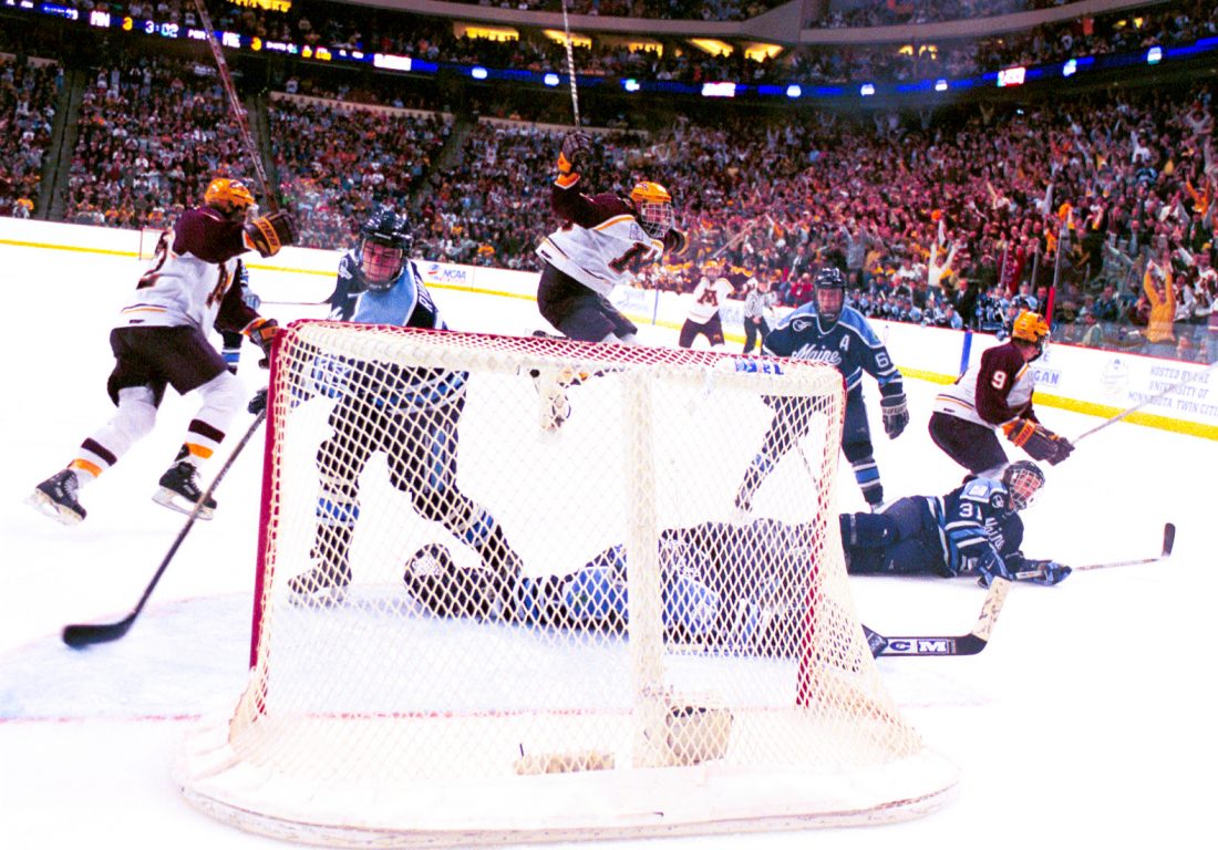 The game against Michigan was a tight one with the Gophers almost coughing up a big lead, but they managed to outlast the Wolverines, which was a gratifying moment for Lucia as Michigan defeated Colorado College in overtime for the 1996 national championship when he coached the Tigers. After dispatching the Wolverines, Minnesota now had its big opportunity to end the long drought. However, they’d have to get past a talented Maine team that won a national title just three years earlier.