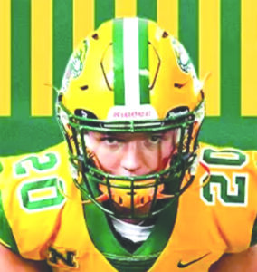 - This closeup of Northern Michigan University running back Noah Dobert is taken from an illustration marking his All-American status by the Division II Conference Commissioners Association. (Photo illustration courtesy NMU)