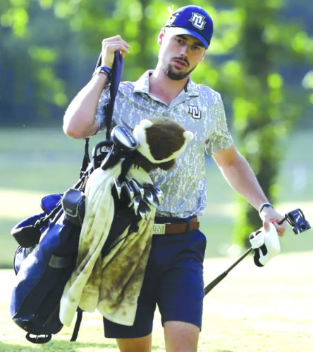 Ex-Carney-Nadeau High School standout golfer Hunter Eichhorn carries his bags during a collegiate tourney while playing for Marquette University. (Photo courtesy Marquette University)