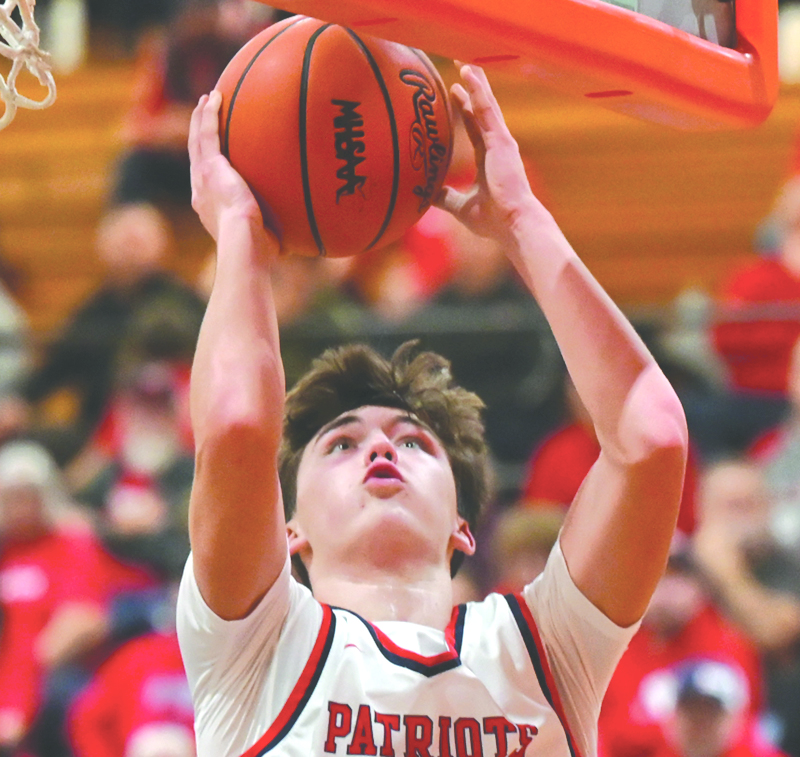 Negaunee's Ethan Marta scores two points on a layup during a high school boys basketball game played against Negaunee at the Patriots’ gym in Ishpeming on Friday. Marta set the school single-game record with 46 points. (Photo courtesy Cara Kamps)