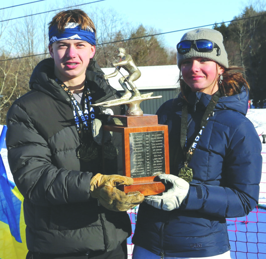 - Lake Skytta, left, and Sydney Kuhl were named overall winners of the 2026 Rumney Memorial award after the youth alpine ski meet held Saturday at Marquette Mountain. (Photo courtesy Julie Kelly)