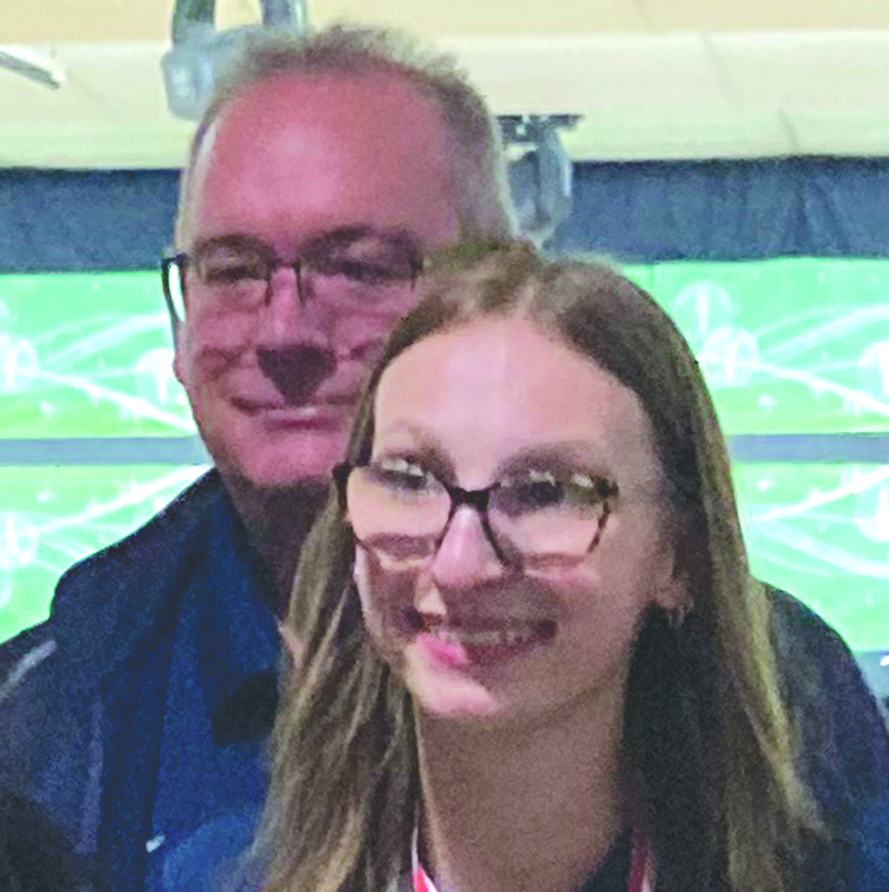 - Westwood bowler Avarie Vial, right, and her coach Barrie Rae stand for a photo after the Patriots girls won the Upper Peninsula Bowling Conference girls team finals title at River Rock Lanes in Ishpeming on Saturday. (Photo courtesy Maria Virch)
