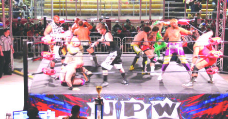 - Chaos breaks out in the ring during the Mike Shaw Memorial Battle Royale held during MarquetteMania IV at Lakeview Arena in Marquette on Saturday. The late Shaw was a WWE star under several monikers and was a Skandia-area native. (Journal photo by Justin Marietti)