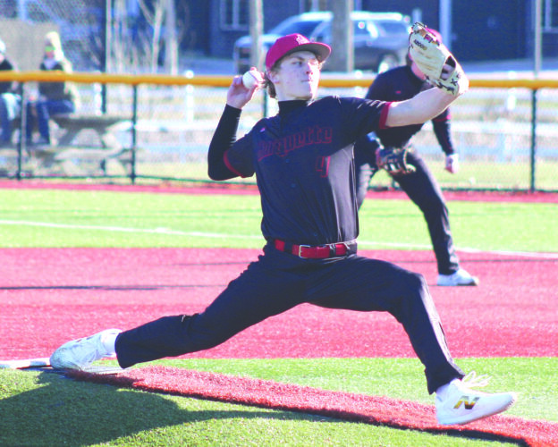 Marquette pitcher Jonas Snapp delivers to the plate during a Sentinels game played in Mauston, Wis., on Saturday. (Escanaba Daily Press photo by Adam Hinch)