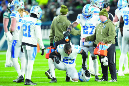 “Not at this point, OK,” he said. “The only thing I will say is I was disappointed in our rush in the last drive (on Sunday), but prior to that in these first two games they’ve been unusual games as it related to pass rush.”