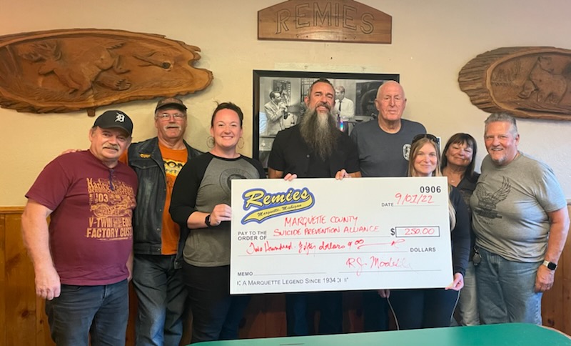 Marquette County Exchange Club recently presented a $1,500 donation to Marquette County Search and Rescue. Shown at the presentation are, from left, Terry Sleeter of Search and Rescue, Marquette County Sheriff Greg Zyburt, new club member Debbie Danielkiewicz, and Search and Rescue member ...