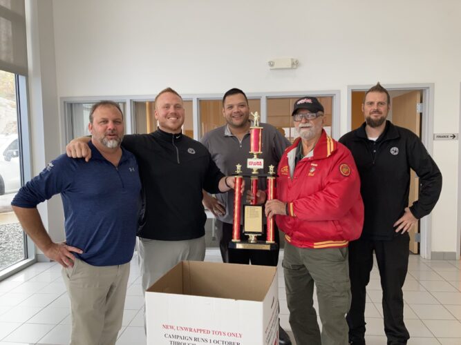 Fox Negaunee, winners of the 2021 Toys for Tots car dealer toy collection trophy, kicks off 2022 Toys for Tots car dealer campaign competition. Pictured are Bob Bannan, second from right, representing the TFT Foundation along with FOX Negaunee employees Dan Shelafoe, Matt Forward, Jon Nyquist ...