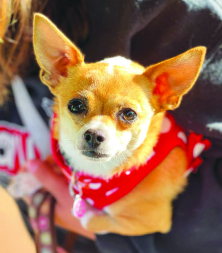 Pictured at top left is Kate Dehlin showing off her dog pack; at top right, Duane Ray poses with his dog Lobo; and at lower left, Kathi Fosburg and her pooch Penelope smile for the camera. (Photos courtesy of Ann Brownell) At the bottom right, Cheryl Rehmann’s dog Tucker hunted for and won the best costume prize. (Photo courtesy of Cheryl Rehmann)
