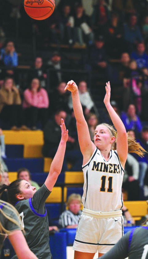 - Negaunee’s Aubrey Johnson, right, follows through on a shot during an MHSAA Division 2 girls district tournament championship game played against Gladstone at Lakeview Memorial Gymnasium in Negaunee on March 7. (Photo courtesy Cara Kamps)